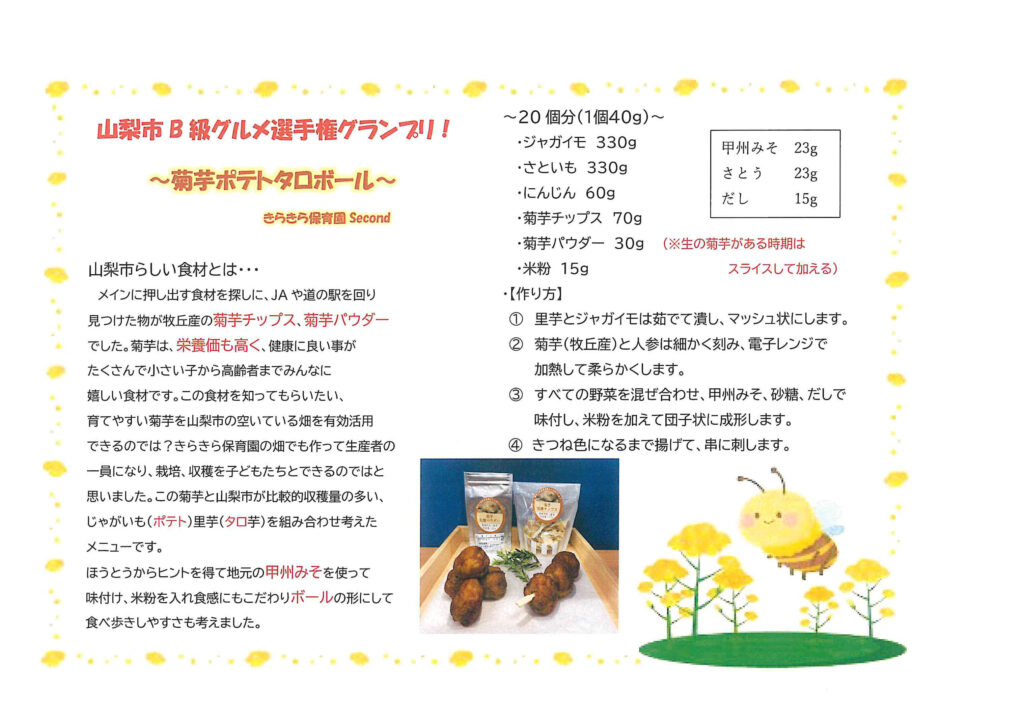 きらきら保育園より、山梨市B級グルメ選手権グランプリのご案内です。